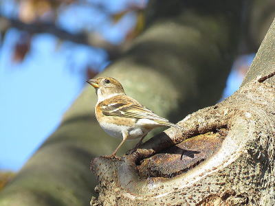 | アトリ[11月25日] ケヤキの幹のこの場所に次々にやって来ます | アトリ[11月25日] 夢中でケヤキの実を食べています | |