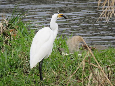 | オオジュリン[11月27日] しばらく前から来ていましたがやっと撮れました | ダイサギ[11月27日] 大きな魚を獲りました、飲み込むのに時間はかかりませんでした | |