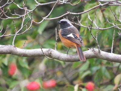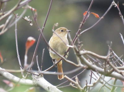 | アオジ[10月31日] 声は聞きますが姿はなかなか見えませんでした | ジョウビタキ[10月31日] ハナミズキの枝に止まりました | |
