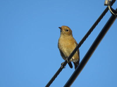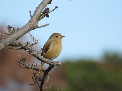 | ジョウビタキ♂[11月8日] この桜の木に♀が一緒に居た時間もありました | ジョウビタキ♀[11月8日] 公園や畑、庭木と行動範囲は広いです | |
