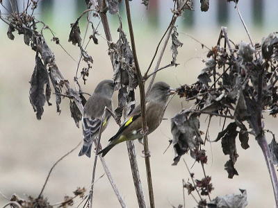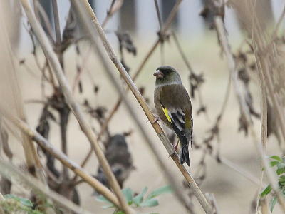 | カワラヒワ[11月15日] 枯れた草の実を食べているようです | カワラヒワ[11月15日] 群れでやって来ました | |
