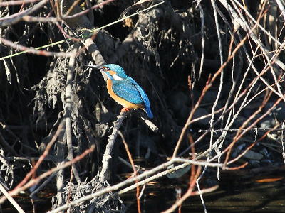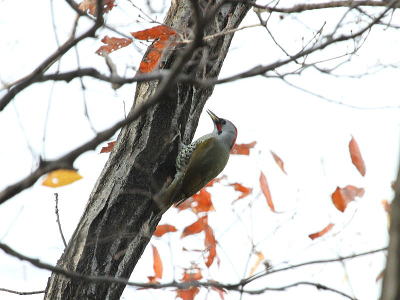| アオゲラ[12月11日] 声がして探すと高い木の幹を登って行くところでした | カワセミ[12月10日] 後ろの水に飛び込み羽繕いを始めました | |