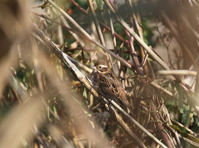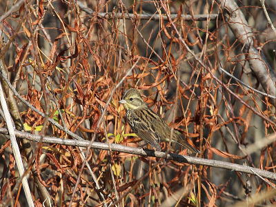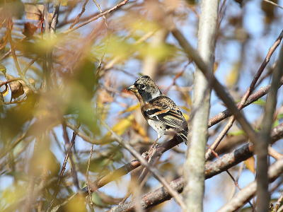 | オナガ[12月6日] 遊水地で20羽以上の群れでした | アオジ[12月6日] 草むらから飛び出して来ました | |