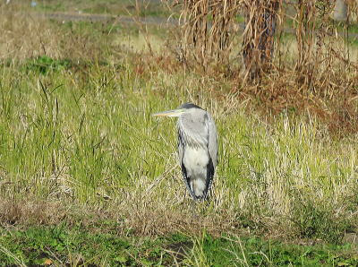 | ホオアカ[12月2日] 直ぐに隠れてしまいます | アオサギ[12月2日] 田んぼの真ん中で居眠りをしていました | |