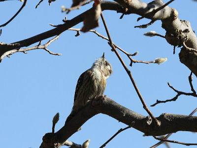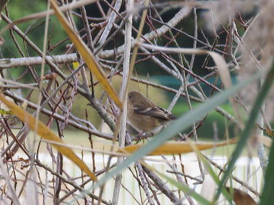 | モズ[11月30日] もじゃもじゃの中で鳴いていました | カワラヒワ[11月30日] 群れで水浴びにやって来ました |