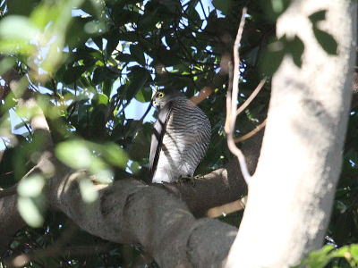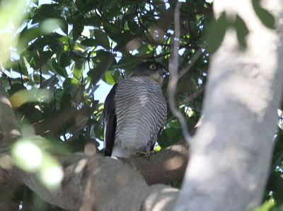 | ツミ[12月16日] このままどこかで越冬するのでしょうか | ツミ[12月16日] ヒヨドリを狙い損ねたようでした | |