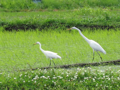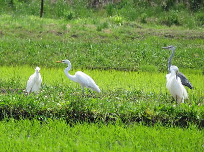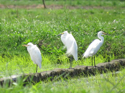 | アマサギ、ダイサギ、チュウサギ[6月6日] 3種並びました | チュウサギ、ダイサギ[6月6日] サギ類が多くいました | |