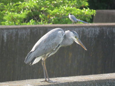 | アオサギ[6月1日] 親も近くにいて様子を見ているようです | アオサギ[6月1日] 堰堤の上にアオサギ幼鳥を見かけました | |