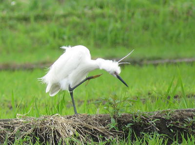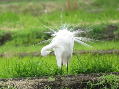 | チュウサギ[6月6日] 飾り羽を広げました | コサギ[6月6日] 今日は田んぼにいました | |
