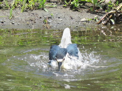 | ゴイサギ[6月1日] 気持ち良さそう!! | ゴイサギ[6月1日] 水浴びしようとしています |