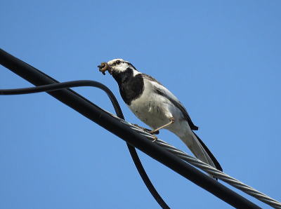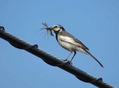 | ハクセキレイ[6月14日] 近くに居たのですが、もう巣立ちしているようです | ハクセキレイ[6月14日] 民家の庭木の中に運んで行きました | |