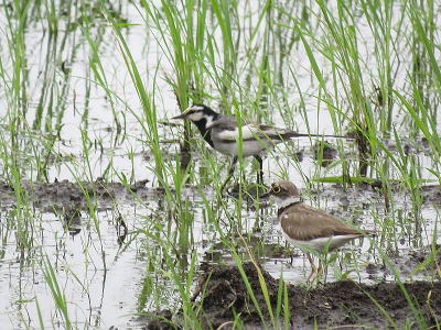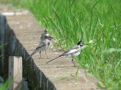 | コチドリ、ハクセキレイ[6月29日] コチドリ2羽、ハクセキレイ親子、巣材集めのツバメ、田圃は賑わっていました | ハクセキレイ[6月29日] 幼鳥は何羽もいました | |