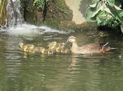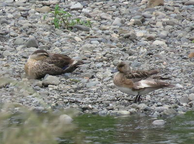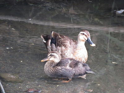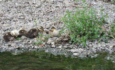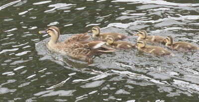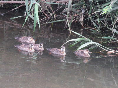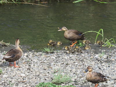 | カルガモ[6月7日] ヒナ5羽連れがいました、ヒナはだいぶ大きくなっています | カルガモ、ヒドリガモ[6月7日] 一緒に居れば安心かも | |