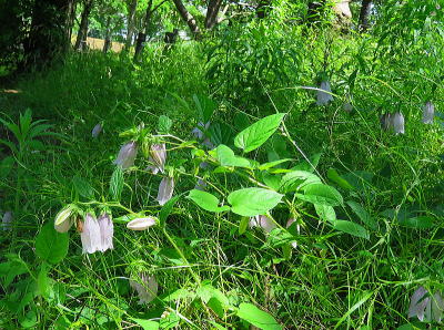 | ベニシジミ[6月3日] 草葉に止まり朝露を吸っていました | ホタルブクロ[6月3日] 群れて咲いていました | |