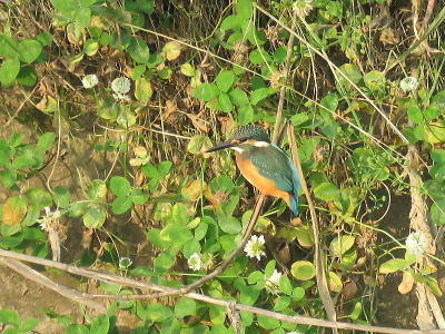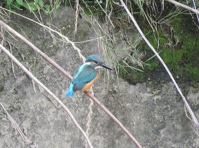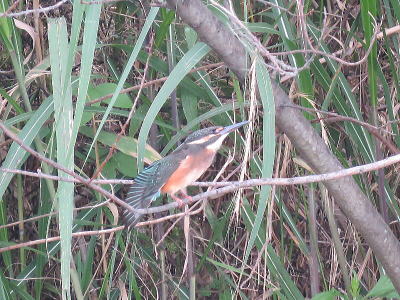 | カワセミ[6月29日] 少し先輩は上手く小魚を獲っていました | カワセミ[6月29日] 幼鳥です、止まっている枝が高過ぎます、餌獲りは諦めているようでした | |