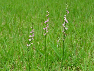 | ジャコウアゲハ[6月22日] 昔の栗畑付近で飛び交っていました | ネジバナ[6月22日] 公園の芝生に沢山咲いています | |