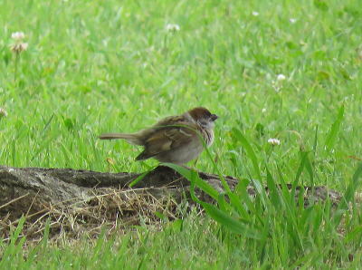 | ヒドリガモ[6月7日] いつから居たのでしょう、羽を痛めているようです | スズメ[6月7日] 幼鳥です、親から餌を貰っていました | |