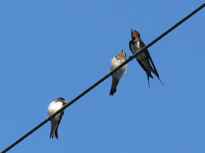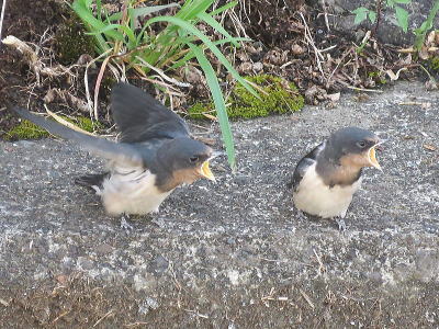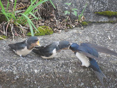 | ツバメ[6月3日] 親は順番に餌を与えていきます | ツバメ[6月3日] 一昨日見かけたのと同じかも | |