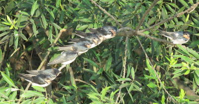 | ツバメ[6月11日] 幼鳥はここに8羽、直ぐ上に1羽の計9羽いました | ツバメ[6月11日] 親が餌を持って来ました | |