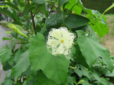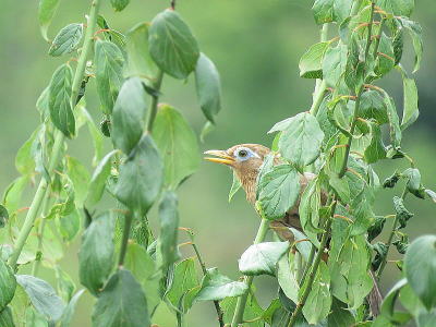 | キカラスウリ[8月24日] 花はそろそろ終わりのようです | ガビチョウ[8月24日] 梅林で賑やかに囀った後、2羽が隠れながら庭木に移って行きました | |