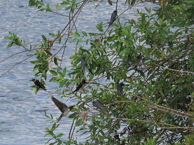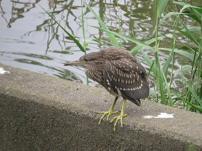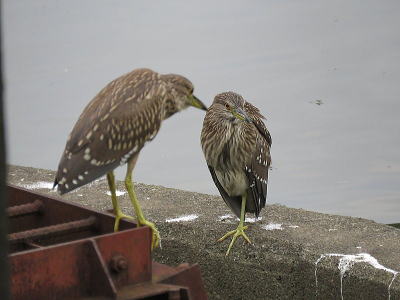 | ゴイサギ[8月24日] 下に1羽、上に2羽の3羽いました | ゴイサギ[8月24日] 堰の上にもいました | |