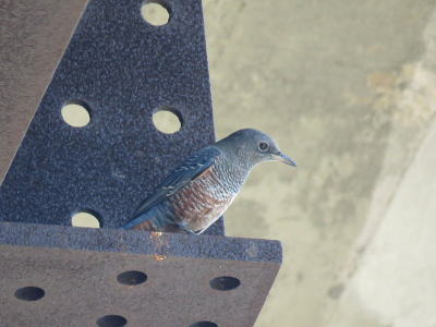 | カルガモ[7月31日] 橋の上から見つけました | イソヒヨドリ[7月31日] 橋の下です、ここで見るのは久しぶり | |