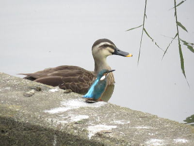 | ムラサキシジミ[8月1日] 羽を開いてくれたのはこの一瞬だけでした | カワセミ、カルガモ[8月1日] 珍しい2ショットです | |