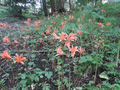 | キツネノカミソリ[8月22日] 夏の花です、毎年増えているようです | キツネノカミソリ[8月22日] 今年は少ないと思っていましたが、いつの間にかこんなに咲いていました | |