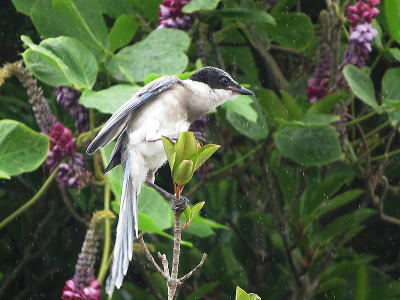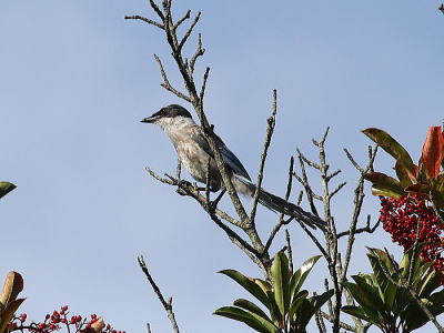 | イソシギ[8月28日] 裏門の堰です、ここに居るのは珍しいです | オナガ[8月28日] 群れでサンゴジュの実を食べに来ていました | |