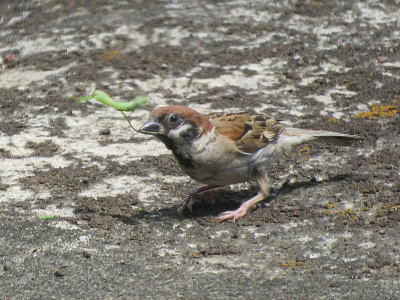 | スズメ[8月5日] 弱ったところでぺろりと食べてしまいました | スズメ[8月5日] カマキリを捕まえて振り回したり、叩きつけたり | |