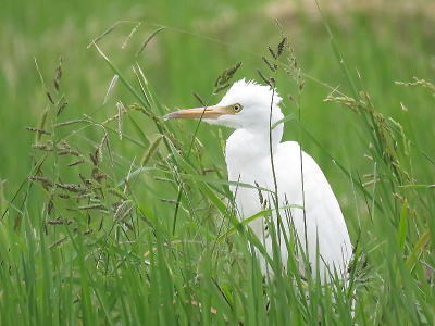 | アマサギ[9月27日] バッタ類を探しながら歩いていました | アマサギ[9月27日] 渡り途中に寄ってくれたのでしょう | |
