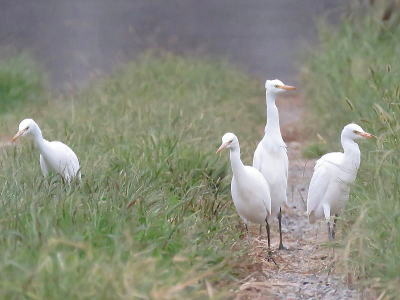 | コサギ[9月27日] 珍しく6羽も集まっていました | アマサギ[9月27日] 黒っぽい虫を獲りました | |