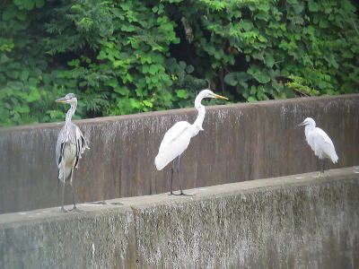 | センニンソウ[9月4日] あちこちに咲いていて見頃のようです | アオサギ、ダイサギ、コサギ[9月4日] 3種揃いました | |