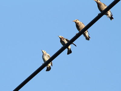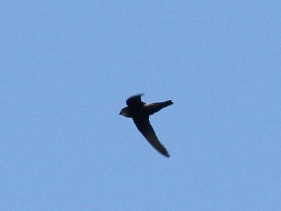 | ヒメアマツバメ[9月2日] 数羽が少しの間上空を旋回して行ってしまいました | コムクドリ、ムクドリ[9月2日] ムクドリの大群の中にコムクドリが少し混じっていました | |