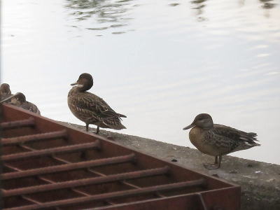 | コムクドリ、ムクドリ[9月21日] ムクドリが50羽位飛んできた中に1羽だけコムクが混じっていました | コガモ[9月21日] 落ち着いたようです | |