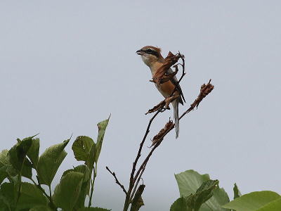 | シジュウカラ[9月2日] 丸まった葉っぱの中に何かいるのでしょう | モズ[9月1日] 気の早いモズです、もう高鳴きをしています | |