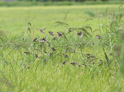 | チュウサギ[9月1日] 全部で4羽いました | スズメ[9月1日] 一面ごちそうです |