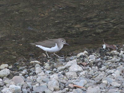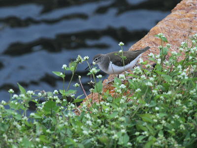 | オオバン、カルガモ[11月9日] オオバンは上流側にも2羽いました | イソシギ[11月9日] 日陰で採餌中です | |