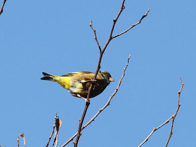 | キセキレイ[11月9日] 黄色が鮮やかです | カワラヒワ[11月9日] 珍しく1羽で止まっていました | |