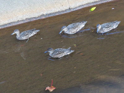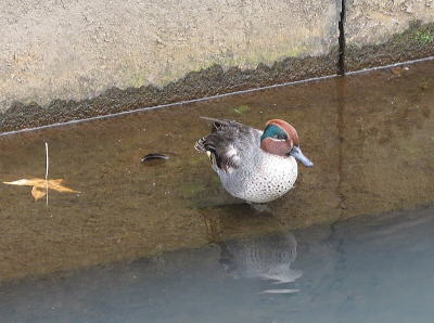 | コガモ[11月11日] 3か所に分かれて13羽いました | コガモ[11月11日] しばらくの間見かけませんでした、久しぶりです | |