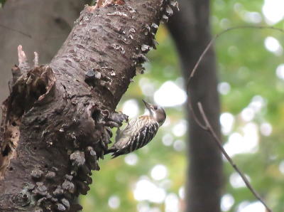 | コゲラ[11月10日] 枯れた桜の幹には虫が多いのでしょう | オナガ[11月9日] 1羽だけでギャーギャーと鳴きながら飛んで来ました | |