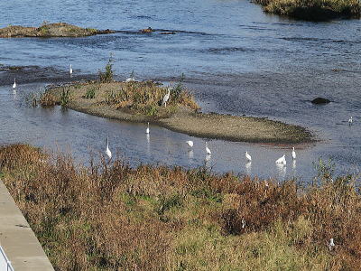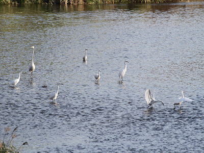 | カイツブリ[11月9日] 岸近くで潜水を繰り返していました | コサギ[11月9日] 10羽以上集まって餌獲りしていました |