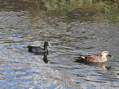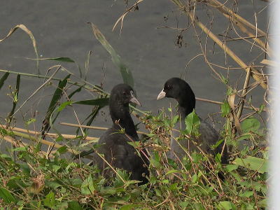 | ユリカモメ[11月13日] 今日は50羽以上いました | オオバン[11月13日] 左は幼鳥でしょうか、もう1羽、計3羽いました | |