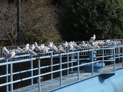 | ユリカモメ[11月10日] 10羽いるのが確認できました | ユリカモメ[11月10日] 川に下りて待っているようでした | |
