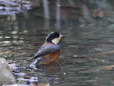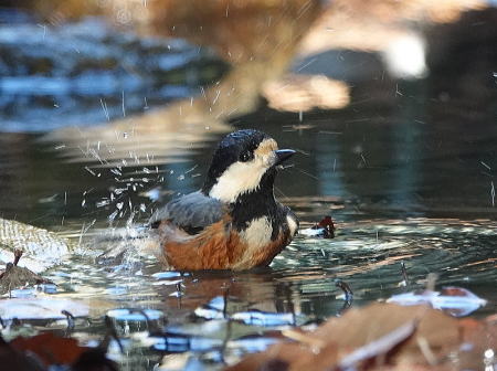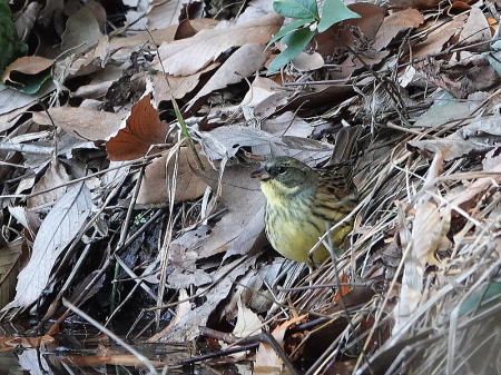 | ヤマガラ[2月9日] 水浴びでさっぱりした後水を飲んでいました | アオジ[2月9日] 採餌しながら池に下りる場所を探しています | |