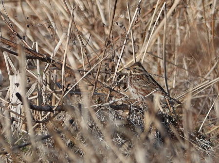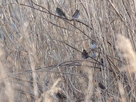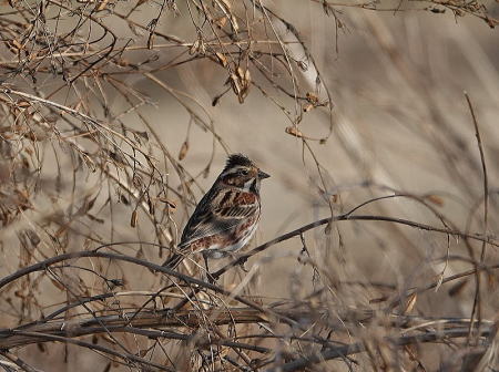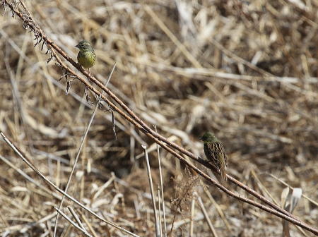 | カワラヒワ[2月18日] 150羽以上の群れです | カシラダカ[2月18日] 枯草の色に紛れていて探すのが難しいです | |