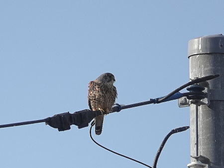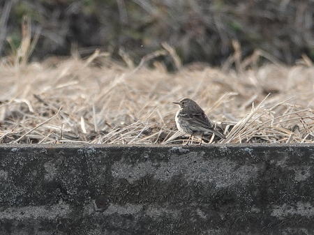 | チョウゲンボウ[2月16日] ♂です、夕方餌獲りにやって来ます | タヒバリ[2月15日] 20羽くらいの群れでいますが警戒心が強くなかなか見つけられません | |
