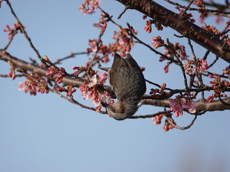 | ヒヨドリ[2月26日] やっと咲き始めた河津桜の蜜を美味しそうに吸っていました | コチドリ[2月26日] 気の早い到来です | |
