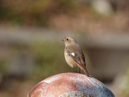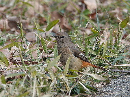 | ジョウビタキ[2月5日] 地面に下りて餌を探しています | ジョウビタキ[2月5日] ♀は少し離れた公園にいました | |