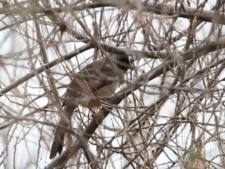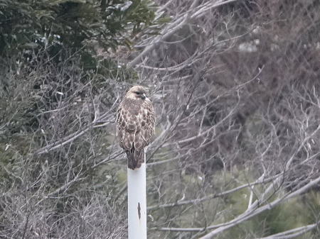 | オナガ[2月3日] 餌が沢山あるようで群れで採餌していました | ノスリ[2月3日] 休憩中のようです | |